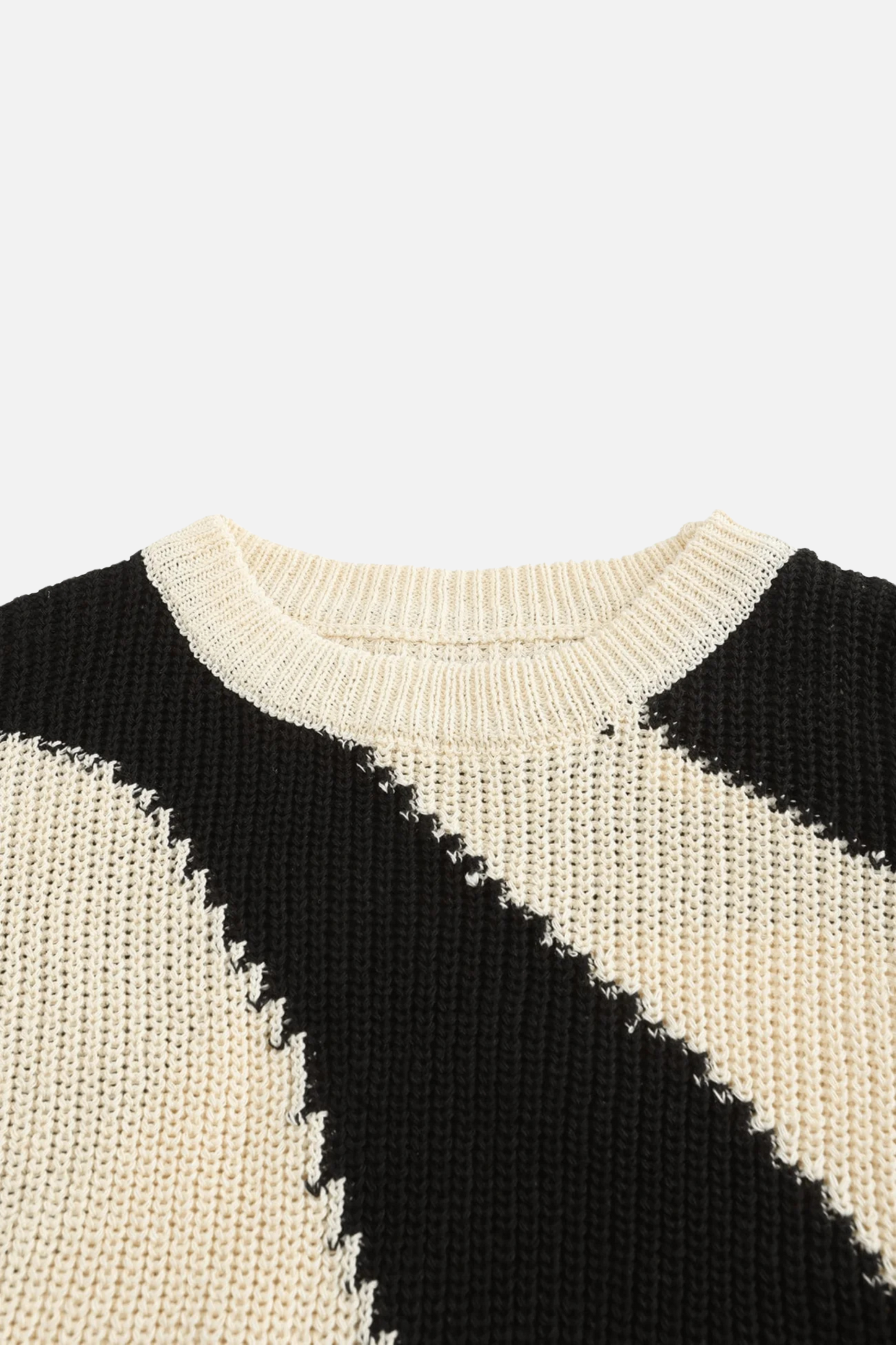 A signature piece from Maison Dorléac, this abstract-patterned sweater exudes a sophisticated, graphic style. Ribbed knit, a round neck, and a straight cut with a soft drape make it a quiet luxury statement piece, perfect with raw denim or dress pants.