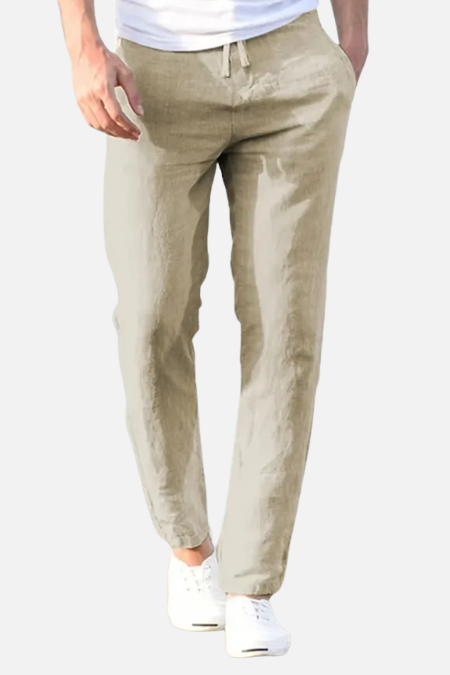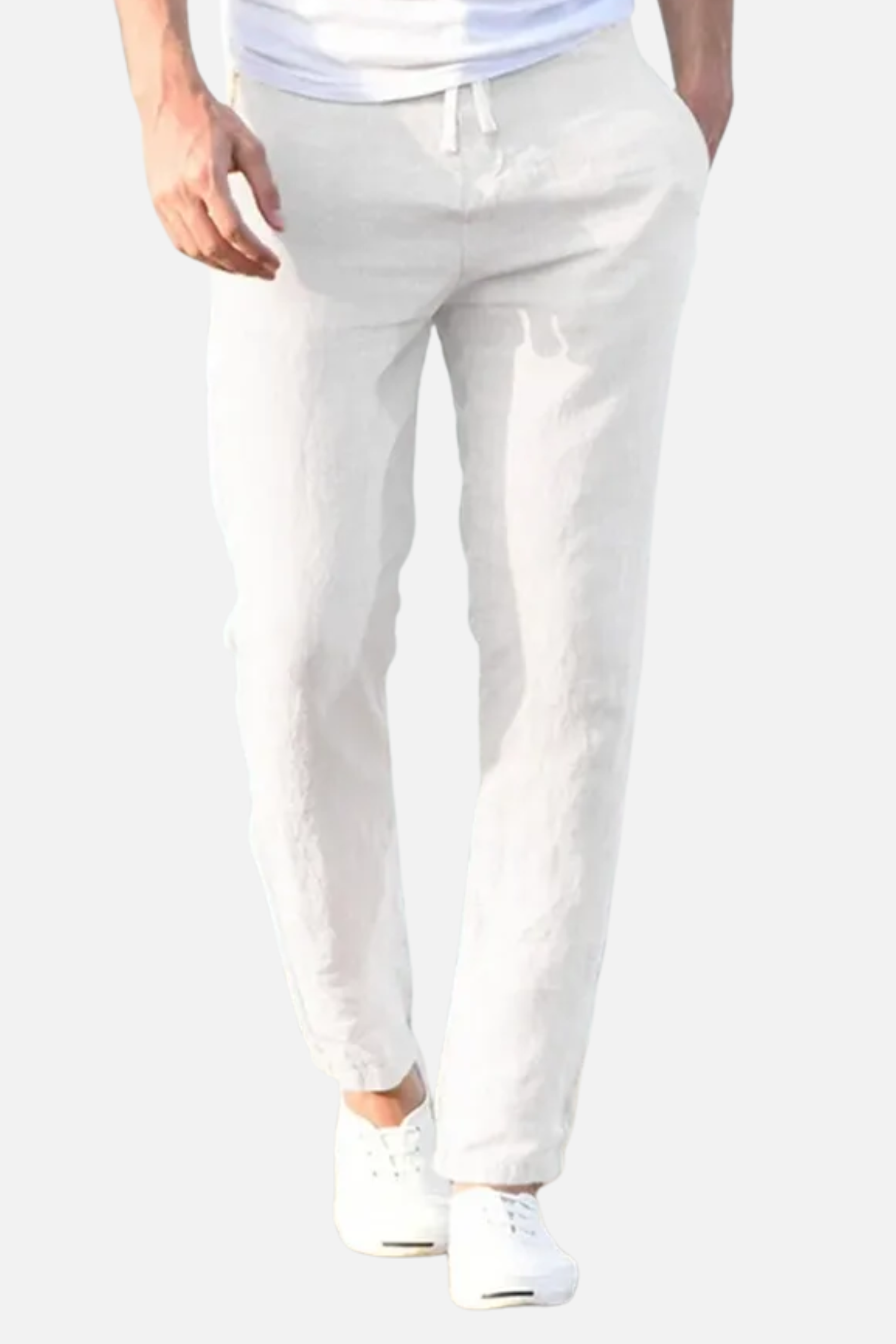 Signature Maison Dorléac, ce pantalon détente 100% lin promet fraîcheur et aisance. Taille élastiquée à cordon, coupe droite et matière respirante — le basique estival à porter avec tee-shirt, chemise ou espadrilles.
