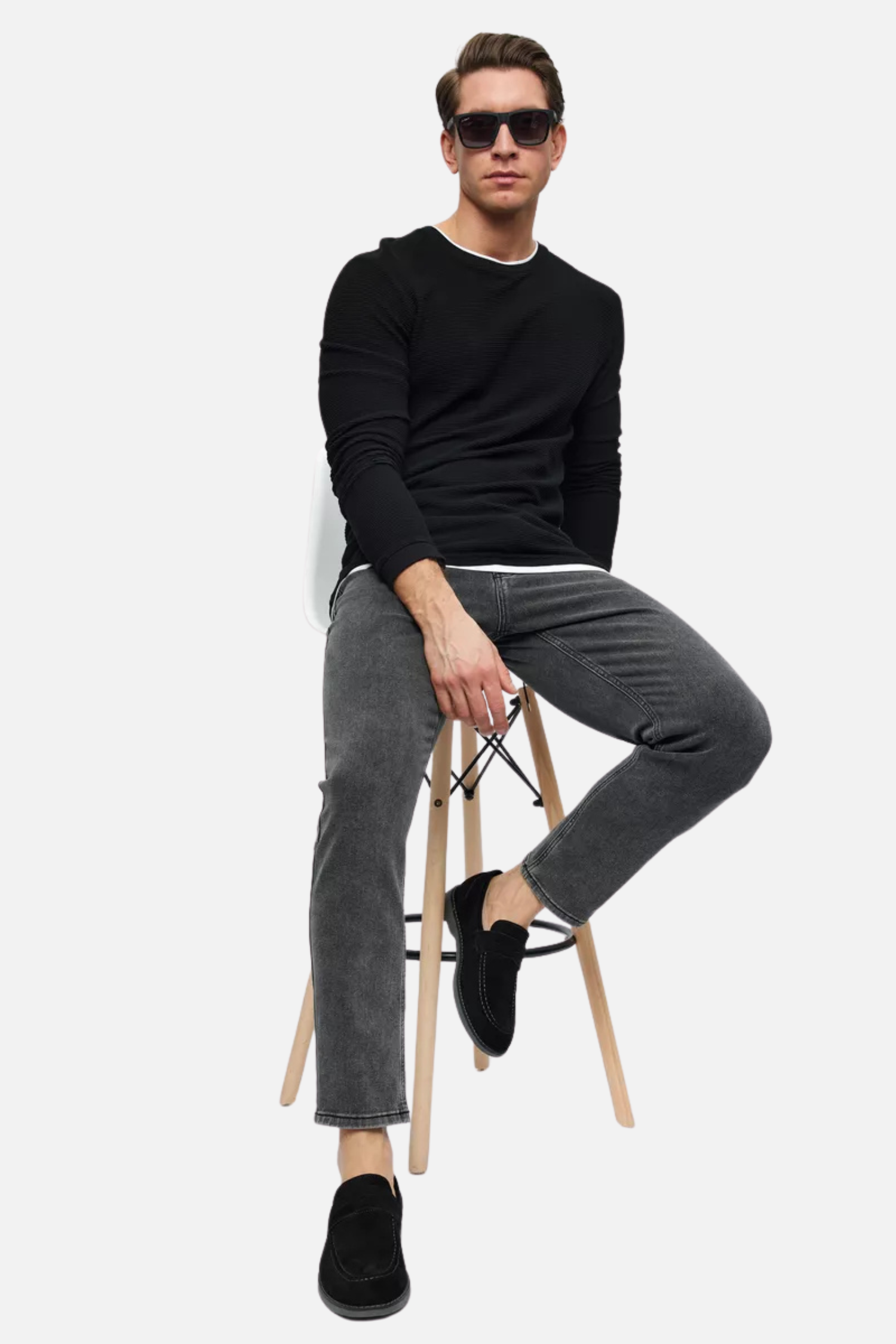 Signature Maison Dorléac, ces mocassins Penny épurent la silhouette avec barrette iconique et ligne allongée. Tige à l’aspect suédé, semelle souple et intérieur confortable — l’alternative chic qui passe du chino au costume.